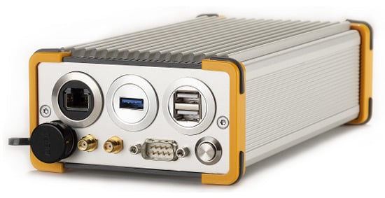 The GOOSE© platform, developed by Fraunhofer IIS and marketed through TeleOrbit GmbH, is a GNSS receiver with an open software interface [13,52,53]. This receiver contains a customized tri-band radio-frequency front-end (RFFE), a Xilinx Kintex7 field-programmable gate array (FPGA), and a peripheral component interconnect express (PCIe) interface to connect to an external processor. Figure 6 shows the GOOSE single board computer (SBC) receiver. The RFFE amplifies, filters, downconverts, discretizes the GNSS signals, and sends the digital samples to the FPGA. The analog-to-digital converter (ADC) discretizes each frequency band at a sample rate of 81 MHz and a resolution of 8 bits for the in-phase and quadrature-phase (IQ) components. The FPGA includes one acquisition module and sixty single point correlator (SPC) tracking channels, which the processor can control. The Kintex7 FPGA of the GOOSE SBC is connected to a dual-core ARM processor with an Ubuntu 16.04 operating system and 1GB RAM. The processor performs the acquisition of the incoming digital samples using the acquisition module of the FPGA. The tracking starts once the acquisition achieves a rough estimate of the frequency Doppler f and code phase . The tracking stage of this GNSS receiver is partially implemented in the FPGA (e.g., correlators and NCO) and software (e.g., discriminators and loop filters). This stage consists of three steps. First, the FLL and the DLL refine the acquired f and estimates. Second, the PLL starts and synchronizes with the carrier phase. Finally, the FLL stops and the PLL can work unaided when the latter successfully achieves a good lock with the carrier phase. The receiver synchronizes with the navigation data at this stage, and the integration time increases to the symbol period. In the case of Global Positioning System (GPS) L1 C/A, the integration time is increased to 20 ms. Table 1 presents the configuration of the tracking scheme during the fine carrier phase synchronization. Once the navigation data is decoded, the PVT solution is computed based on the pseudo range measurements.