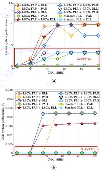 Two metrics are selected to evaluate the system performance of the proposed adaptive tracking architecture. The first metric evaluates the system performance in terms of the carrier phase. The carrier system performance is the same as in previous studies [25]: