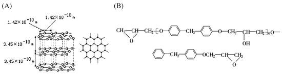 Microstructure of carbon fiber and epoxy resin: (A) microstructure of carbon fiber; (B) main structure of epoxy resin [38].