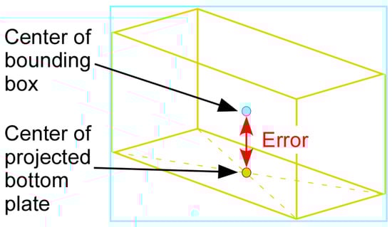 Difference between the center of a bounding box and the center of the bottom plate of a rectangular prism.