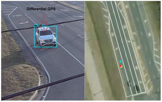 This result is better than the previously reported results by Lu et al. [21], which was described in Section 2. Their results showed that the average localization error was 1.81 m using a differential GPS as a reference and 1.68 m using a drone as a reference. In contrast to their approach where multiple cameras were used to generate 3D bounding boxes, the new approach presented in this paper achieved more accurate vehicle localization using only a single camera system and 2D bounding boxes. As a result, our method allows for faster processing speeds and greater efficiency.