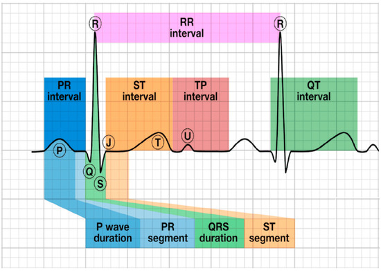 Schematic of ECG signal caused by depolarization and repolarization of the heart. (Reprinted/adapted from reference [83]).
