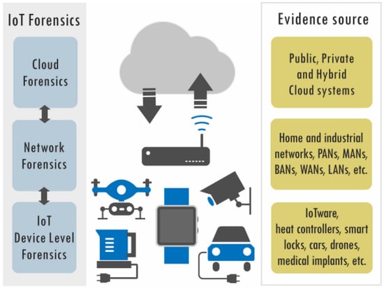 - Surange, G.; Khatri, P. IoT forensics: A review on current trends, approaches and foreseen challenges. In Proceedings of the 2021 8th International Conference on Computing for Sustainable Global Development (INDIACom), New Delhi, India, 17–19 March 2021; pp. 909–913. [Google Scholar]