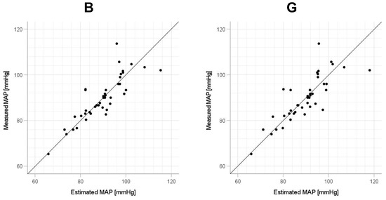 Therefore, by multiplying the known SBPBL1, DBPBL1, and MAPBL1 by the exponentially transformed estimated Δln SBP, Δln DBP, and Δln MAP, as in Equations (5)–(7), we obtain the estimated SBP, DBP, and MAP [25]: