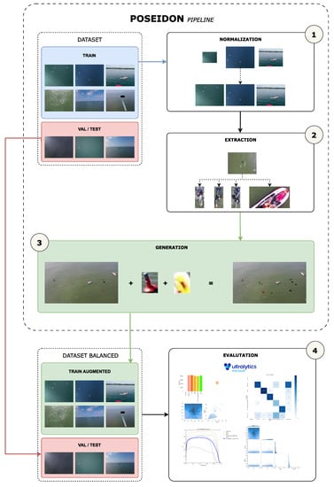 The main dataset is available at https://seadronessee.cs.uni-tuebingen.de/ (accessed on 10 February 2023), and the tools and enhanced dataset developed for this work are available at https://github.com/pabloruizp/POSEIDON (accessed on 10 February 2023).