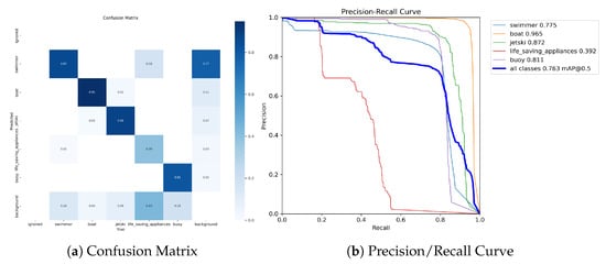 To adhere to the principles of our prior work, we utilized a reduced version of the YOLOv5 and YOLOv8 architectures, specifically YOLOv5s and YOLOv8s. In the maritime domain, where images are often captured by drones or small aircraft, the available bandwidth may be insufficient for transmitting images to an external machine or the cloud for real-time predictions. In such scenarios, deploying lightweight models capable of making inferences on edge devices is desirable. The YOLO family has also demonstrated its potential for edge computing applications [27,28].