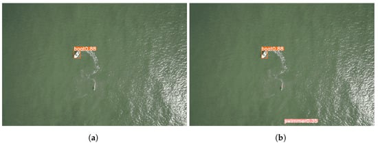Finally, Figure 14 shows another improved prediction generated by the models trained with the augmented dataset. The figure also illustrates that neither of these models is perfect, as there is still a Jet Ski present in the images that neither model was able to detect. Despite the efficacy of our proposed approach in enhancing performance in highly imbalanced datasets, there remain various avenues for further improvement, as detailed in Section 4.1.