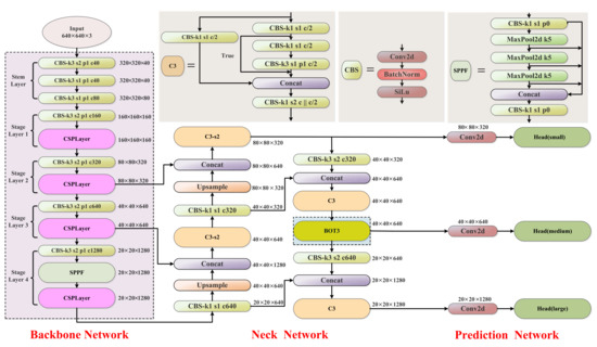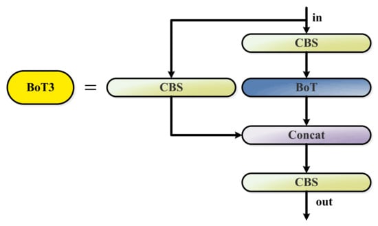 BoT3 added to the Neck of YOLOv5. BoT3 replaces two CBS blocks of the C3 block with the BoT block (Figure 9).