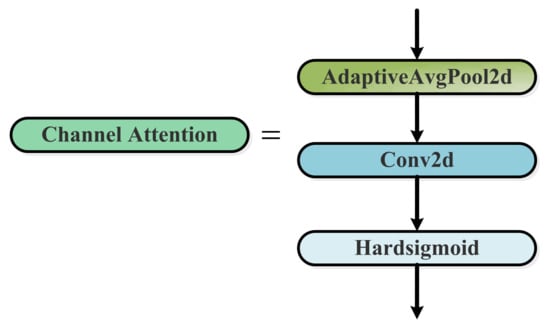 The Channel Attention module consists of a AdaptiveAvgPool2d layer, a Conv2d layer, and a Hardsigmoid activation function. The Channel Attention module allows the detection network to focus on meaningful features and weakens the interference of non-key feature information.