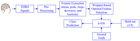 - Naseer, N.; Hong, K.-S. Classification of functional near-infrared spectroscopy signals corresponding to the right-and left-wrist motor imagery for development of a brain–computer interface. Neurosci. Lett. 2013, 553, 84–89. [Google Scholar] [CrossRef]