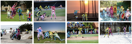 - Pishchulin, L.; Insafutdinov, E.; Tang, S.; Andres, B.; Andriluka, M.; Gehler, P.V.; Schiele, B. Deepcut: Joint subset partition and labeling for multi person pose estimation. In Proceedings of the IEEE Conference on Computer Vision and Pattern Recognition (CVPR), Las Vegas, NV, USA, 27–30 June 2016; pp. 4929–4937. [Google Scholar]