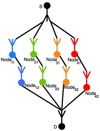 Lobo et al. [] study the Quality of Service of MANET in smart city networks with an emphasis on healthcare. Several frameworks were considered that improve the transmission quality of MANET, as well as individual elements, such as video signal transmission. Cardone et al. [] discuss the MANET and WSN hybrid network for fast data collection in the smart city. The authors provide a transmission protocol based on modern data transmission standards considering IPv6. Pandey et al. [] study methods to improve the reliability of MANET networks and propose a method of self-healing nodes.