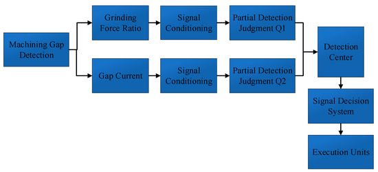 The force measuring instrument and short-circuit status detection unit were used to collect the grinding force ratio and the discharge short-circuit rate through dual channels, and then the control system could classify and count the data collected during the period of time to make a comprehensive judgment of the machining status and to decide on the control steps.