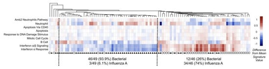 SaVanT visualization for expression data from patients with acute infections (influenza A—circle; bacterial pneumonia—triangle) [].