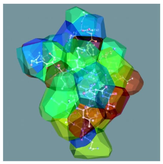 The structure of beta-purothionin in the form of a 3D Voronoi diagram, which was built taking into account weighting factors [].