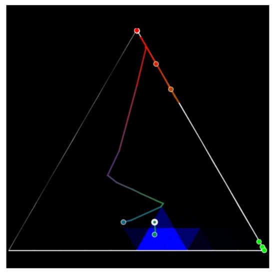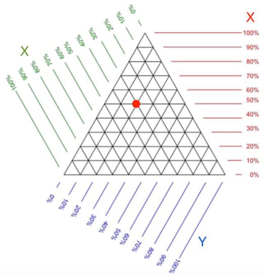 A trilinear coordinate model can be used to display relative data. An example of trilinear coordinates is the United States Department of Agriculture’s soil texture triangle, which is used to define soil types. Robert Bruce Whitaker developed this idea by proposing the use of the trilinear coordinate model [,] to display any three or two object parameters relative to each other.