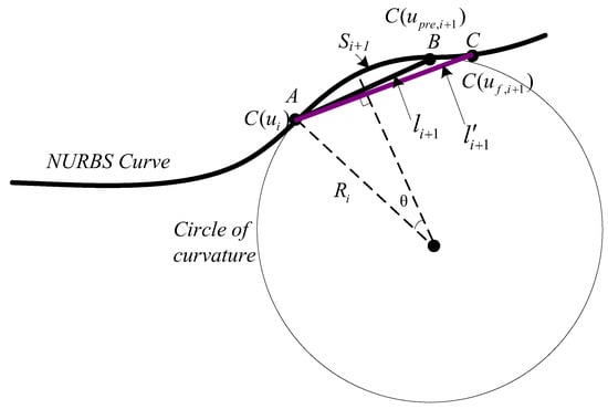 (1) We focused on the critical role of curvature in feedrate fluctuation, proposed the concept of the curvature-sensitive area, and divide the NURBS curve into curvature-sensitive areas and non-curvature-sensitive areas according to the curvature threshold to adapt to the curvature variations;
