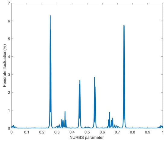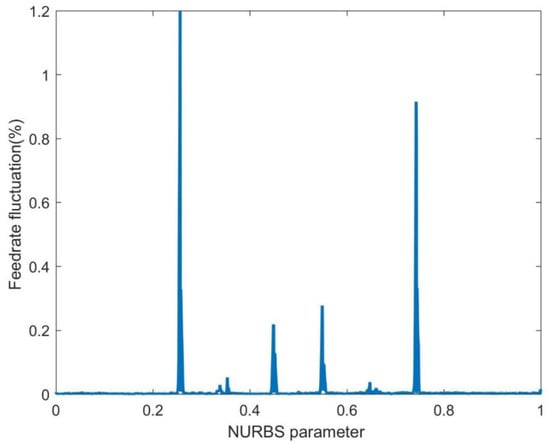 Greater curvature leads to more prominent fluctuation in feedrate. Even after eliminating the feedrate variation through the first-level parameter compensation in the curvature-sensitive area, there is still a pressing issue of substantial feedrate fluctuations. This paper presents a second-level parameter compensation method that is combined with curvature characteristics to address this problem. As shown in