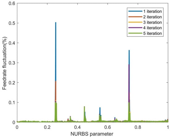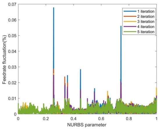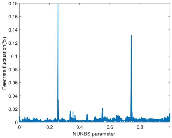 . If the feedrate fluctuation is still higher than the set tolerance, the number of iterations k will update and the next update iteration process proceed. If the current parameter compensation results in the feedrate fluctuation being within the set tolerance and meets the accuracy condition, then, the second-level compensation will end. Next, the NURBS interpolator will solve the curve point coordinates and perform the feed motion. The specific process of second-level parameter compensation is detailed in