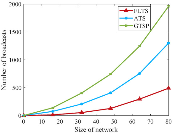 It should be noted that D ˜ i represents the number of neighbor clusters in CCTS, d i is the ordinary neighbors’ number in GTSP, and n is the number of nodes in the network. Obviously, L N n and D i D ˜ i , FLTS is communication efficient. Through the above analysis, increasing the neighbors of the routing node, namely, improving the network density, or reducing the routing nodes, can effectively reduce the number of network iterations.