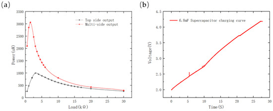 (a) The output power of top-sided PV and multi-sided PVs; (b) charging curve of a 6.8 mF SC.
