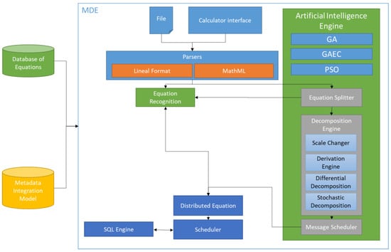 - The equation is analyzed by the equation recognition module. This module checks the database of equations to find the original or similar equation. This database stores information on all previously decomposed equations or equations that could implement similar models. If the equation is not recognized, it is sent to the equation splitter module.