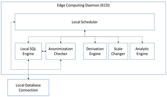 - The Scheduler with the support of Statement Query Language (SQL) Engine manages the process, sending instructions to each ECD involved in the process, and retrieving the results, which are sent back to the Scheduler.