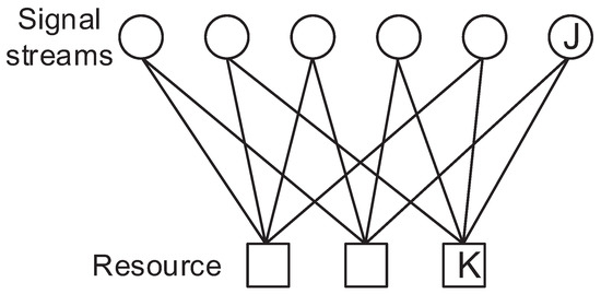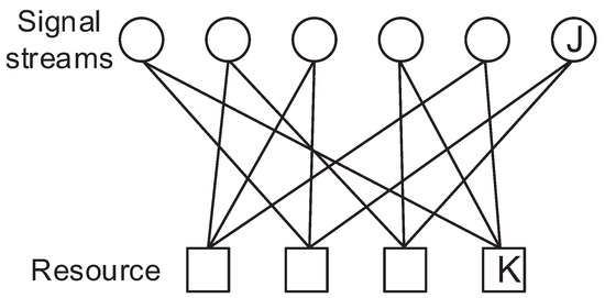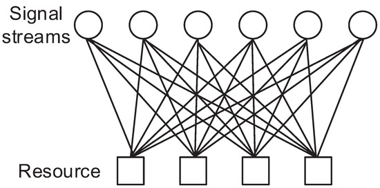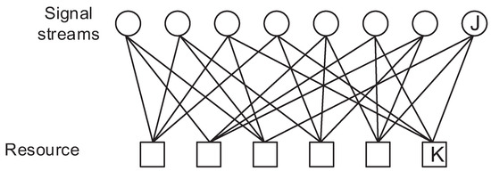 In the DSM system, J signal stream nodes and K resource nodes are fully related. A signal stream is multiplexed into all the resources regarding other signal streams. Then, the received signal model can be expressed as seen below [6].