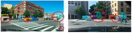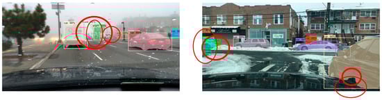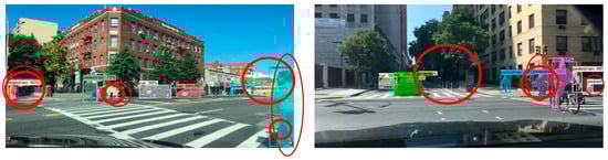 The detection of targets such as vehicles, pedestrians, and non-motorized vehicles is one of the core problems of environment perception in self-driving cars. Most traffic accidents are caused by the collision of vehicles, pedestrians, and non-motorized vehicles, so the detection and segmentation of such objects in the traffic scene is helpful to avoid the occurrence of traffic accidents []. As a two-stage instance segmentation model, Mask R-CNN extends Faster R-CNN and adds a parallel mask branch to achieve end-to-end multi-target detection and segmentation.