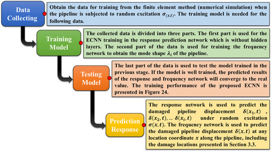 The prediction of damaged pipeline displacement can be described through the following steps in Figure 23. If the ambient excitation and the initial condition are given, the proposed ECNN can be used to predict the displacement response of the pipeline (Figure 24).
