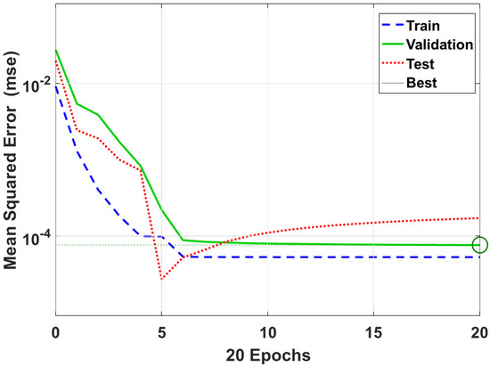 To estimate the proposed ECNN performance in damage identification of BFRP composite pipelines, three indicators were calculated during the training process. The accuracy rate (), regression rate (), and F1-score () are based the indexes (TPR, TNR, FPR, and FNR) and are calculated as follows: