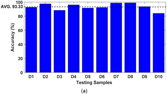 As shown in Figure 26, the overall performance values were , , and , for , , and , respectively. These results confirm that the proposed method can automatically identify the damage in composite pipelines with satisfactory performance regardless of the corresponding capacitance data noise background and conditions.