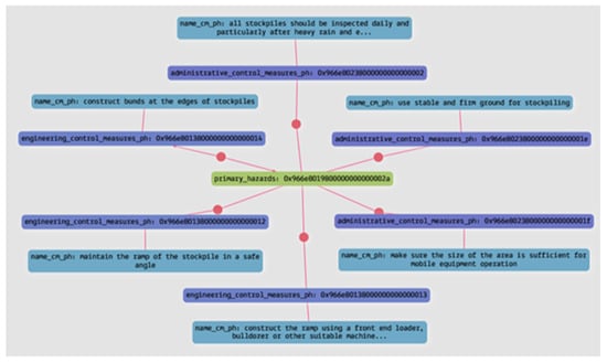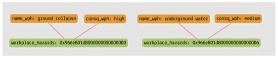 Figure 11 and Table 6 show the result of the query in the form of a graph and tabular form. JHAKG can retrieve not only the hazards associated with the job steps but also the hazards that are associated with the external conditions present at the moment of job-step execution. Since the knowledge graph can identify the consequence levels of each hazard, control measures can be implemented according to their priority level.