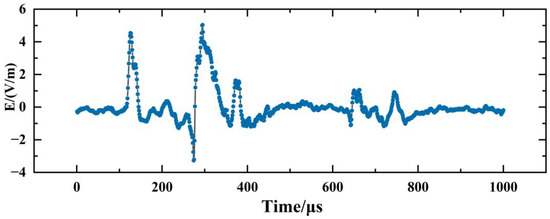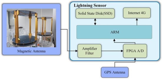 The LEMP waveform data used in this study were collected by the 3D Lightning Detection Network of the Institute of Electrical Engineering of the Chinese Academy of Sciences [20], which covers the Asia-Pacific region and has more than 400 sensor detection sites so far. The sampling rate of each site is 1 MSPS, the length of a single sampling time is 1 ms, and the characteristic length of each collected lightning electromagnetic pulse waveform data is 1 ms. Figure 2 shows LEMP waveform data collected from a sensor device, which consists of 1000 feature points. Figure 3 depicts a block diagram of the lightning sensor device, comprising of antennas, a field-programmable gate array (FPGA), an advanced RISC machine (ARM), and an internet and storage module. The magnetic antenna detects and outputs the magnetic field signal, while the FPGA and ARM process the digital signal. The collected lightning signals can be stored and transmitted through the internet.