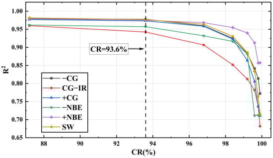 The value range of is between 0 and 1. When R is closer to 1, it means that the fitting effect is better between the reconstructed waveform and the original waveform. Simultaneously, the model prediction effect is better. A waveform reconstructed by a good model method should be able to have a high at a high CR.