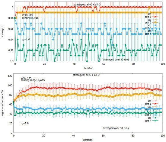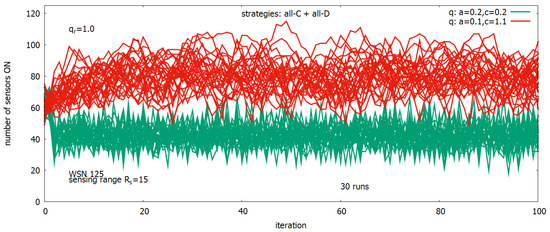 - Gąsior, J.; Seredyński, F.; Hoffmann, R. Towards Self-organizing Sensor Networks: Game-Theoretic ϵ-Learning Automata-Based Approach. In Proceedings of the Cellular Automata, Como, Italy, 17–21 September 2018; Mauri, G., Yacoubi, S.E., Dennunzio, A., Nishinari, K., Manzoni, L., Eds.; Springer: Cham, Switzerland, 2018; Volume 11537, pp. 125–136. [Google Scholar] [CrossRef]