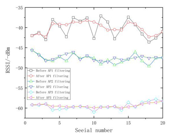 - The algorithm proposed in this paper has certain advantages in positioning accuracy and stability. In addition, the fingerprint database was manually acquired offline, which consumed a large quantity of manpower and material resources and led to the failure of real-time updating. Hence, how to simplify the fingerprint database while maintaining a high-accuracy positioning effect remains to be further explored. The experimental results in this article have slightly higher errors. After analysis, the main reason is that the performance of the AP device is weak and the anti-interference ability is poor. We will correct it in future research. Only the positioning of fixed targets in the indoor environment was investigated in this study. The future research focus will be shifted to the positioning of moving targets in indoor environments.