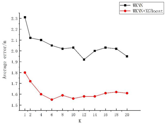 - In view of the shortcomings of the traditional KNN positioning algorithm in practical application, the WKNN algorithm was fused with the XGBoost algorithm in this study to form a positioning algorithm based on WKNN and XGBoost, which improved the large ranging error induced by external interference.