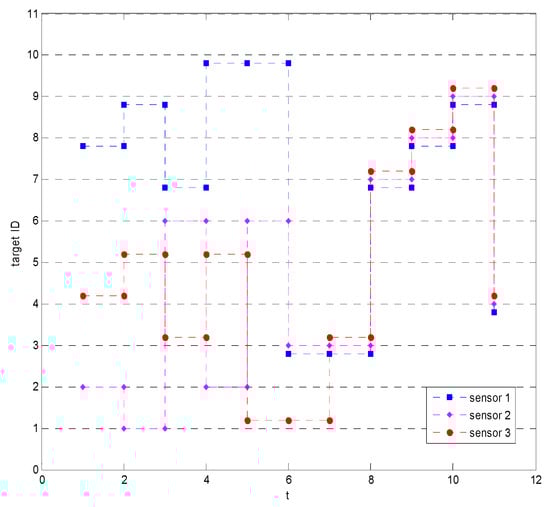 Since a sensor can observe multiple targets at the same moment, it is also possible to assign multiple sensors to observe the same target, and the sensors in the sensor set S are called basic sensors. The pseudo-sensor is a synthetic sensor composed of a set of basic sensors, such that at most one sensor (basic sensor or pseudo-sensor) is assigned to a target at the same moment.