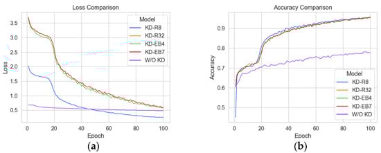 Loss and Accuracy for all student models: (a) Loss; (b) Accuracy.