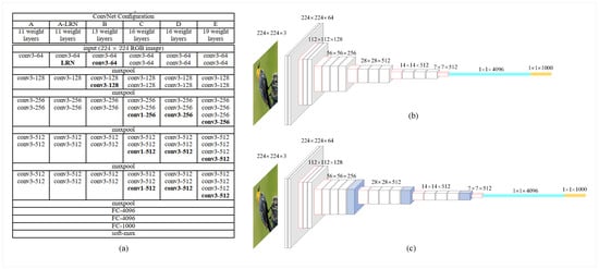 The structure of VGG. (a) The structure of VGG, (b) The structure of VGG16, (c) The structure of VGG19.