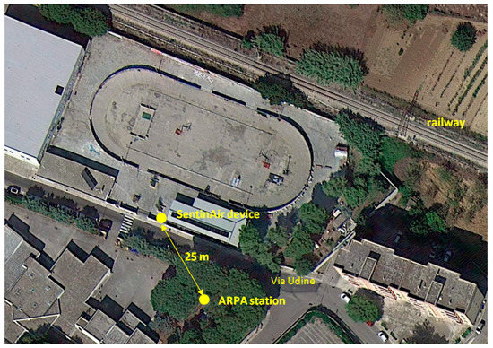 The experiment designed to assess the potential uses of these sensors consisted in placing a SentinAir device near the ARPA Puglia fixed monitoring station located in the town of Mesagne (Italy), as shown in Figure 4.