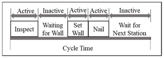 Active periods in a wall-set workstation during a single cycle time.