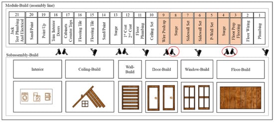 This study is focused on the assembly line of volumetric construction factories. The typical layout of a modular construction factory consists of subassemblies such as walls and roofs, built in different workstations and transferred to the assembly line, where they are installed on the modular units as they move from one station to the next. The time spent by the module at each workstation on the assembly line is defined as ‘cycle-time’. It is assumed that this assembly line is buffer-less; therefore, delays at any of the workstations in this region can cause bottlenecks and impact the entire production. This makes this portion of the factory a critical section for the entire production line and the proposed method empirical to modular construction factories.
