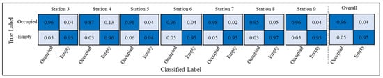 Per-station and overall performance of workstation occupancy identification.