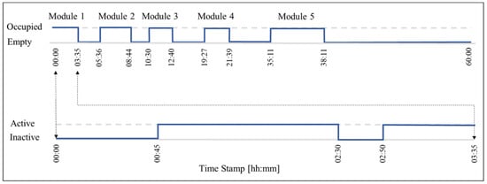 Active periods of workstation three during production of the first module.