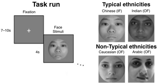 - Golby, A.J.; Gabrieli, J.D.; Chiao, J.Y.; Eberhardt, J.L. Differential responses in the fusiform region to same-race and other-race faces. Nat. Neurosci. 2001, 4, 845–850. [Google Scholar] [CrossRef] [PubMed]