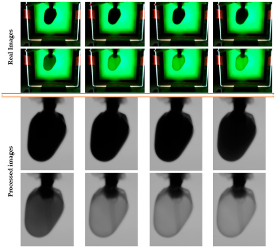 The resolution of every acquired photo is 1024 × 768 pixels. When the software application launches, it saves them in a folder that is automatically generated. The experimental data are represented in the folder name. A second folder containing photos with user-framed areas is automatically created by the application in addition to this one. The following stages are used by the software program to process these photos.