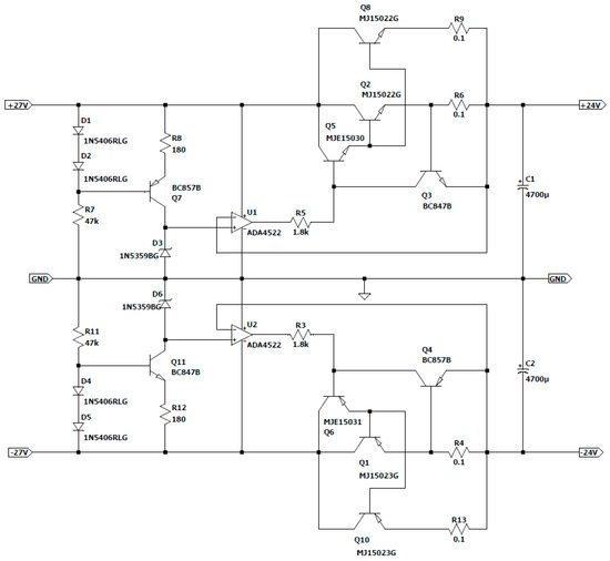 - Bishop, G. Power Amplifiers. In Audio Circuits and Projects; Springer: Berlin/Heidelberg, Germany, 1985; pp. 61–97. [Google Scholar]