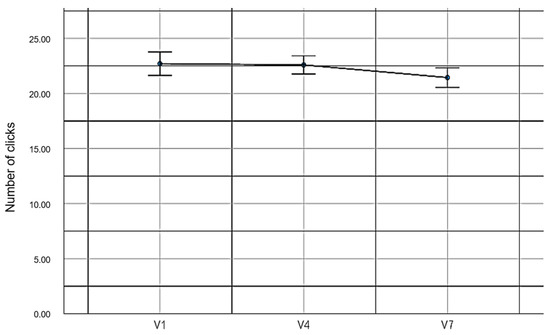V1: The number of clicks in the pairing cards game with the mouse and without EMKEY.